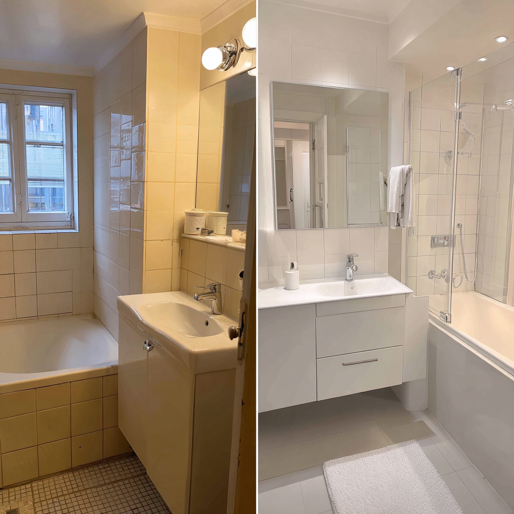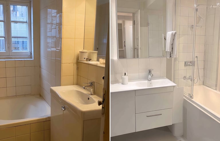 Renovamos zonas concretas del baño: Ducha, Azulejos, Mobiliario o sanitarios Para darle un aspecto más moderno sin necesidad de una reforma.